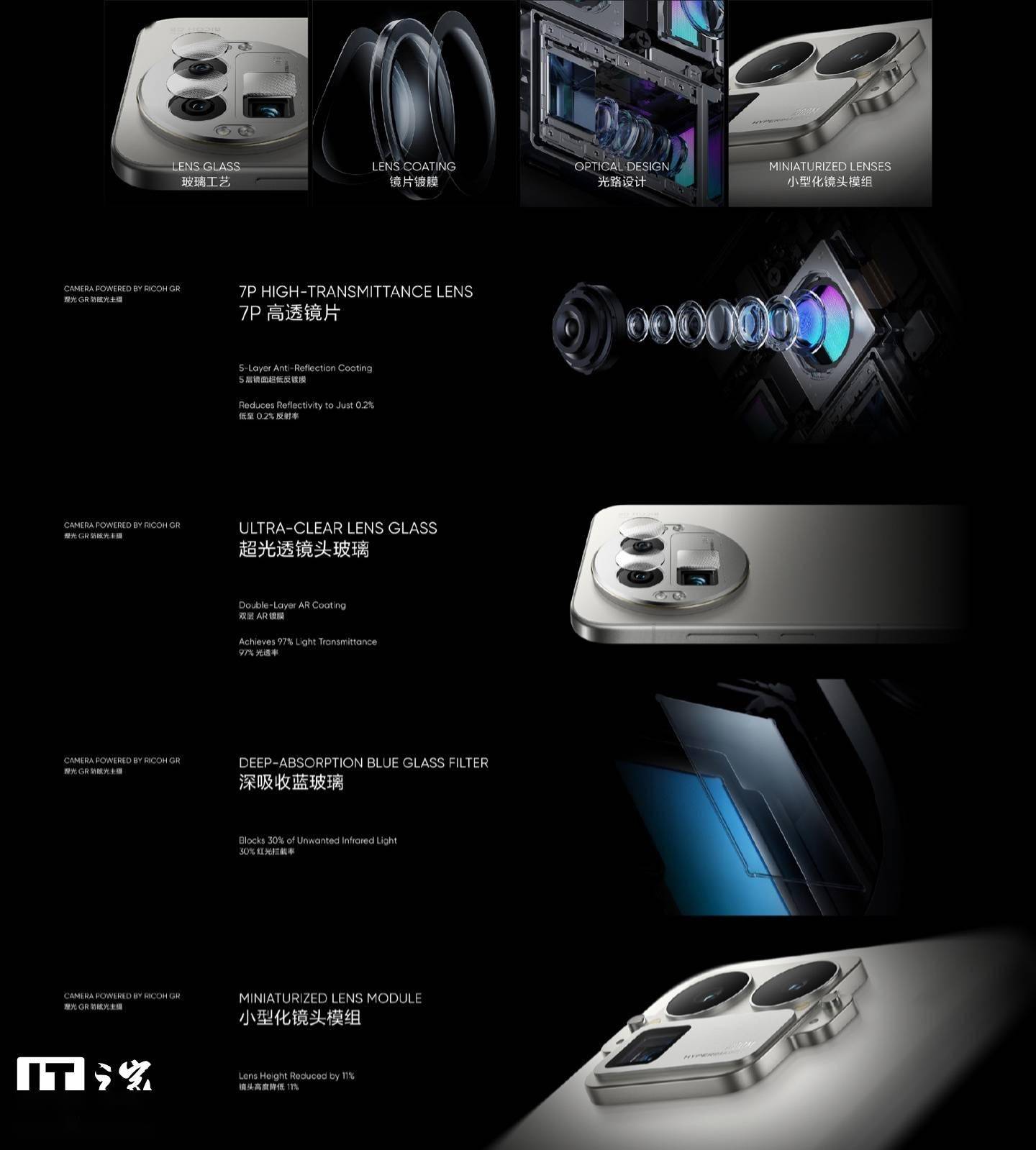 同时,相应手机主摄搭载 1/1.56 英寸 50MP 传感器,匹配“首个通过理光 GR 光学标准认证的手机镜头”,并且经过理光 GR 团队严格验收,其采用 7P 高透镜片、5 层超低反镀膜,内置直觉算法引擎,支持 10-Bit 色彩、超光感 HDR 算法。