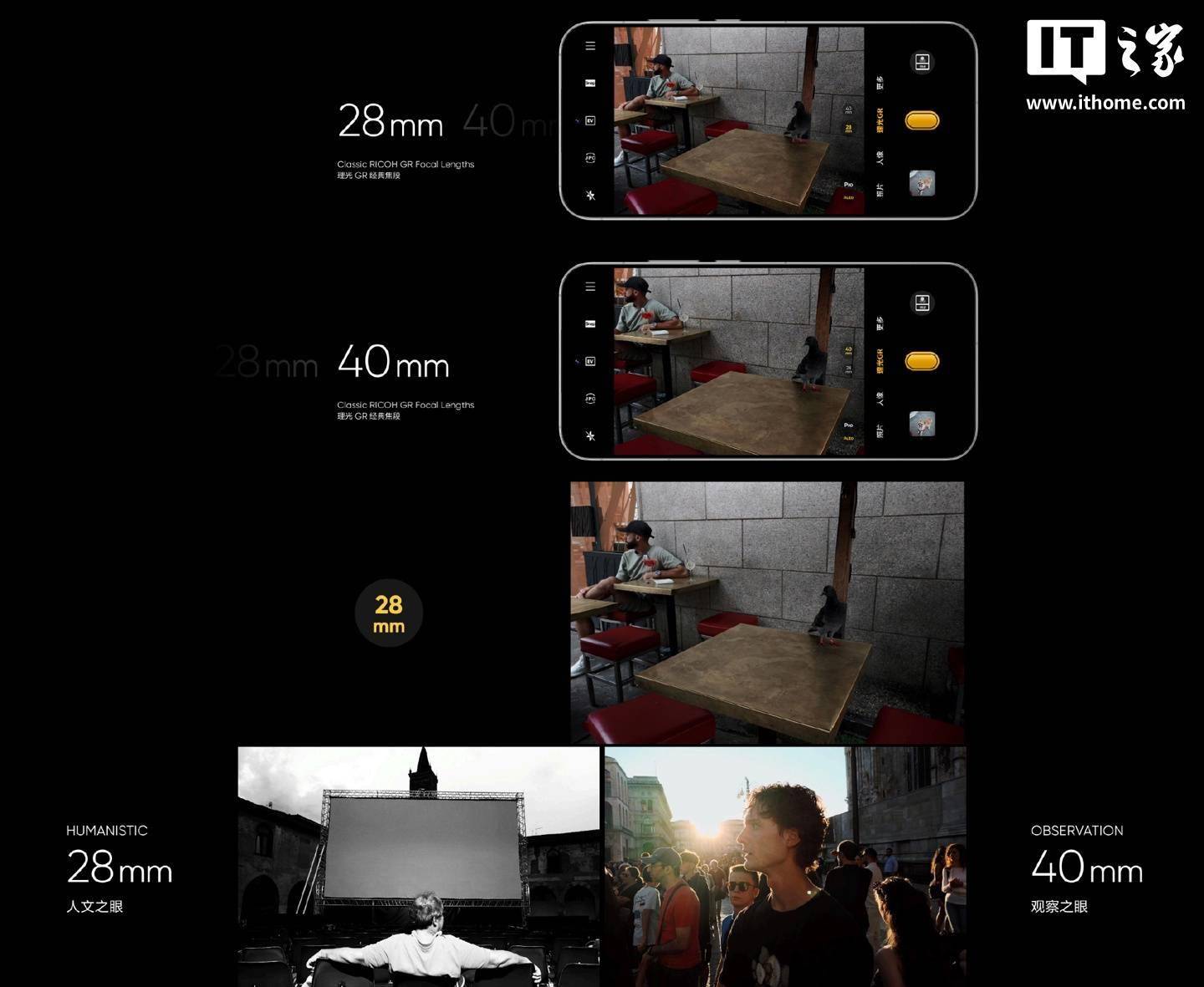 据介绍,诞生于 2019 年 3 月的理光 GR III,保留了捕捉街头场景的 28mm 焦段。而两年后登场的理光 GR IIIx,则用 40mm 焦段开辟了全新街拍视角。而线 Pro 便提供了理光 GR 相应 28mm 与 40mm(等效)焦距。